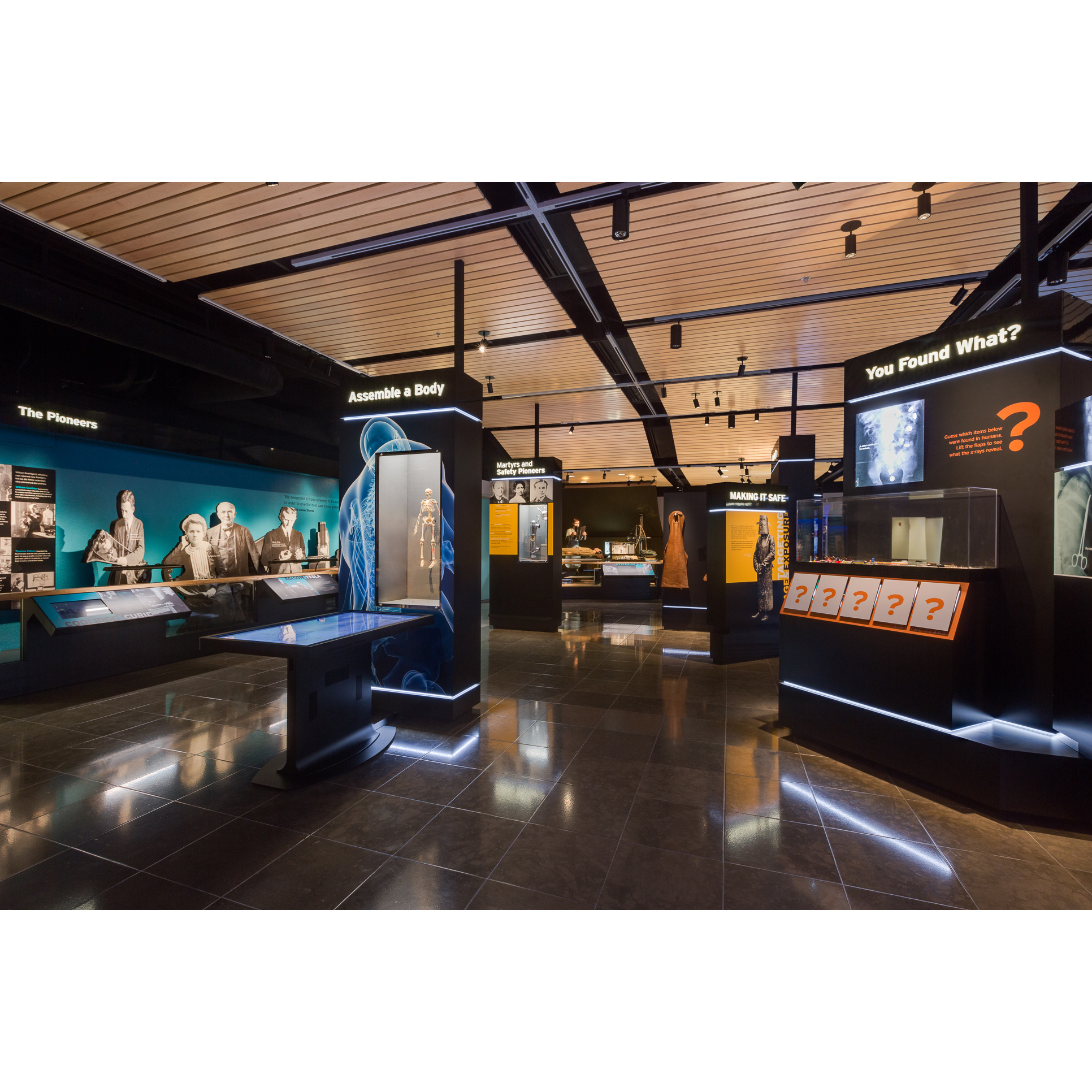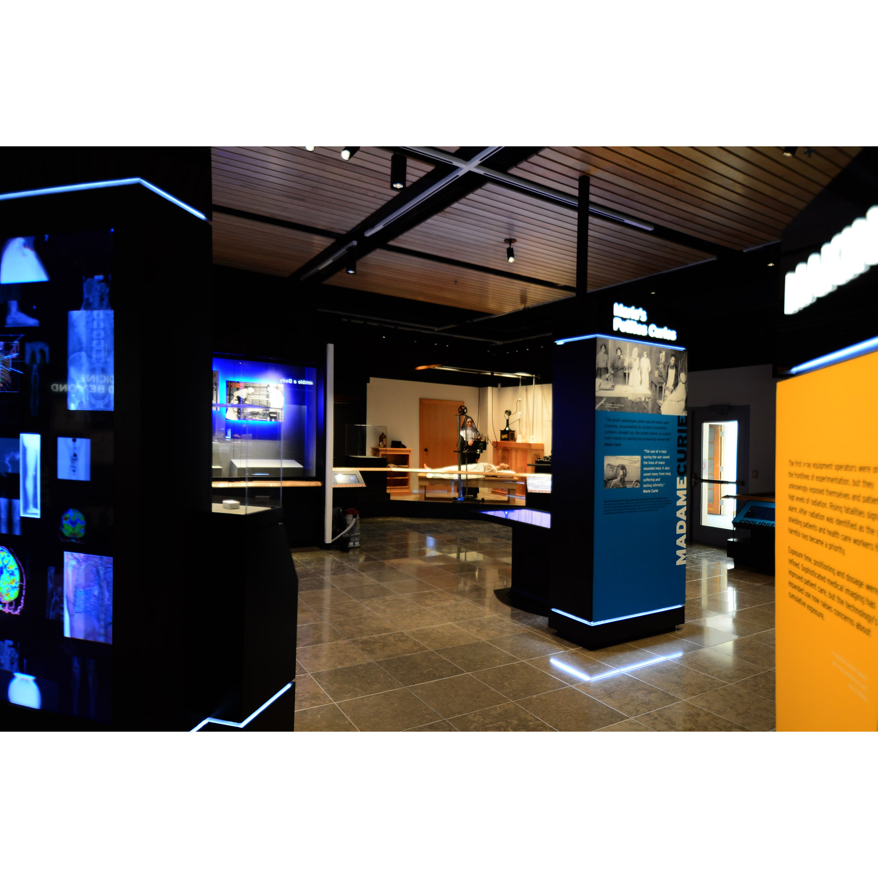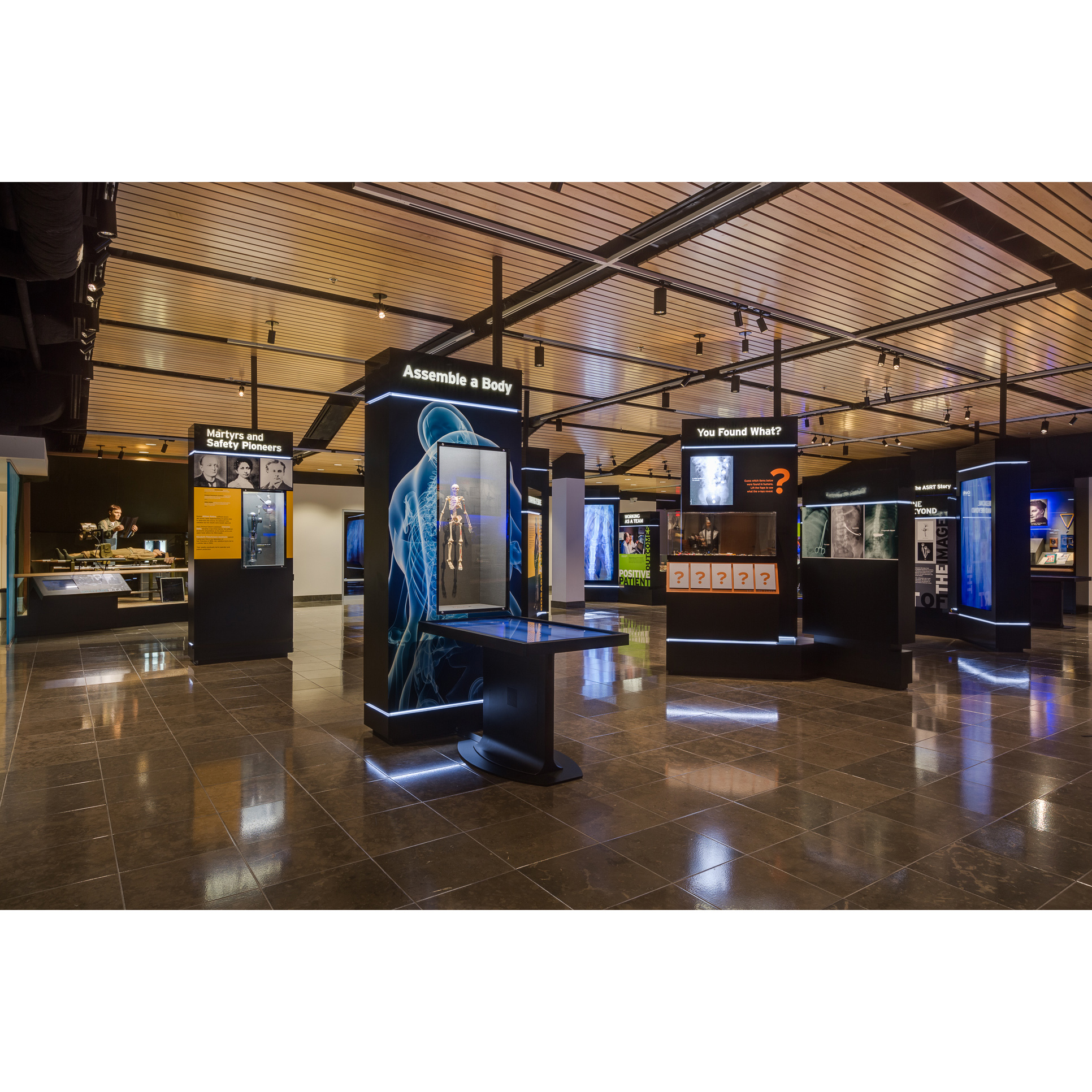 The Museum space inside the American Society of Radiologic Technologist (ASRT) office in Albuquerque New Mexico was designed specifically to house the artifacts collected from around the country to tell the story of the X-RAY beginning in 1895. Through artifacts coupled with the historical videos, touch screens and hands-on displays, members of ASRT learn about the history and pioneers of their industry and the historical changes as technological advances shifted the practice of radiology and produced profound effects in the medical fields such as Radiation Oncology.
