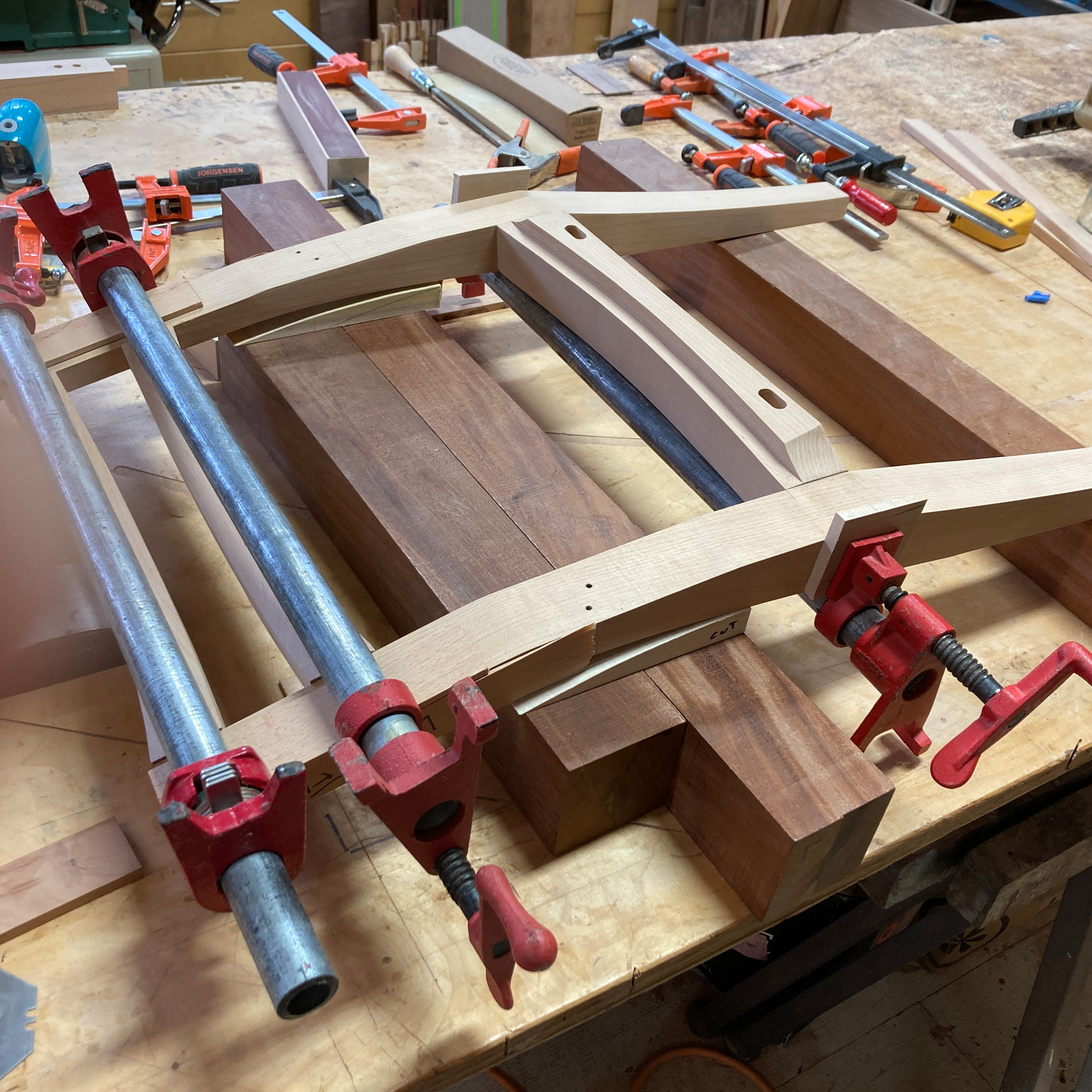 Fabricating the gentle curve of the bentwood seat was the first move and remained the floating center which all others parts revolve around. Each move was a challenge as Larry demanded traditional techniques for mortise and tenon joinery. Still, it was a difficult and tedious process that lasted beyond the course yet after such a process I am happy with the outcome. My background in architecture, my fine art education and a discovered love for woodworking truly blended to design and build the Moon Chair.